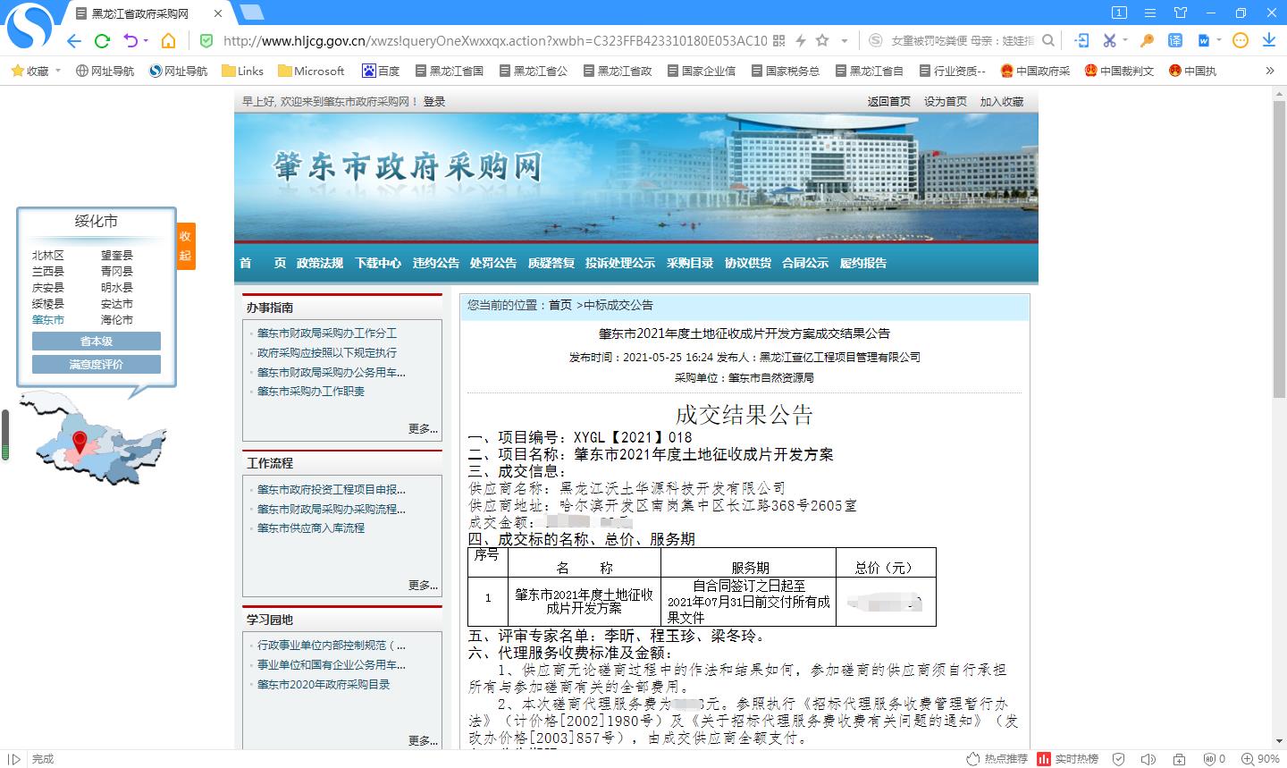 2021年05月25日 中标 肇东市2021年度土地征收成片开发方案